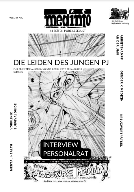Zeitschrift medinfo In unserer Semesterzeitschrift medinfo gibt es – neben einer gesunden Portion Systemkritik – viele nützliche Infos & Tipps zu Studium, Gesundheitswesen und kritischen Perspektiven in der Medizin. Ausgaben medinfo WS 24/25 medinfo WS 23/24 medinfo WS 22/23